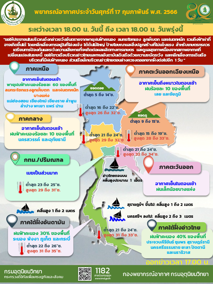 Web 1 day agoพยากรณอากาศ ไทยอากาศแปรปรวนถง 17 กพ. Web 1 day agoภาคตะวนออกเฉยงเหนอ วนท 16 17 กพ. อากาศเยนถงหนาวในตอนเชากบมลมแรง และอณหภมจะลดลง 2 4 องศาเซลเซยส.